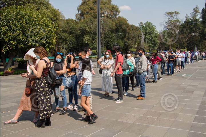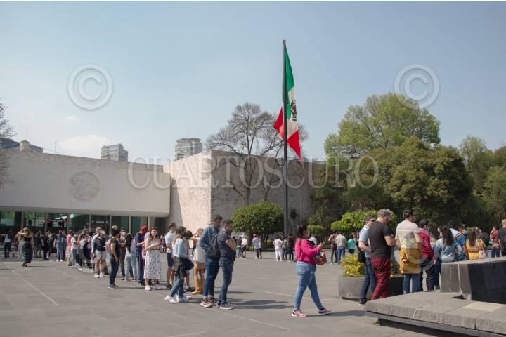Turistas esperando en la fila para entrar al Museo de Antropología.