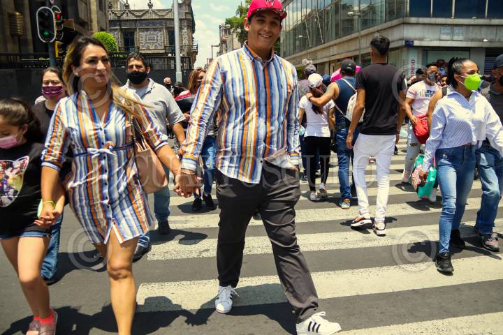 Aglomeración de gente en el l Centro Histórico de la capital Mexicana.