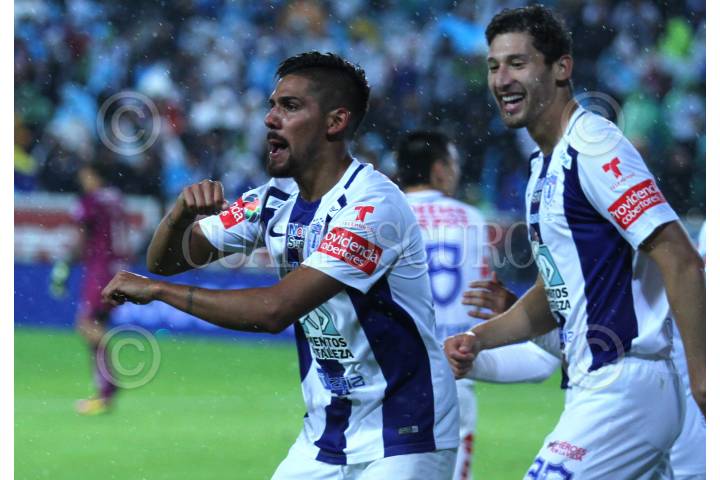 PACHUCA, HIDALGO, 26MAYO2016.- Los Tuzos del Pachuca recibieron a los Rayados del Monterrey en el partido de ida de la Final del Torneo Clausura 2016. En la image, Francisco Jara, festeja el único gol del encuentro y que le da la ventaja a los Tuzos. FOTO: ADOLFO VLADIMIR /CUARTOSCURO.COM