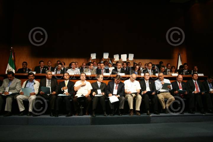 MÉXICO, D.F., 02SEPTIEMBRE2008.- Presidentes municipales del país muestran el acuerdo que se firmó esta tarde con German Martínez presidente del PAN , durante la reunión que sostuvo donde se trato el tema de la seguridad. FOTO: SÁSHENKA GUTIÉRREZCUARTOSCURO.COM
