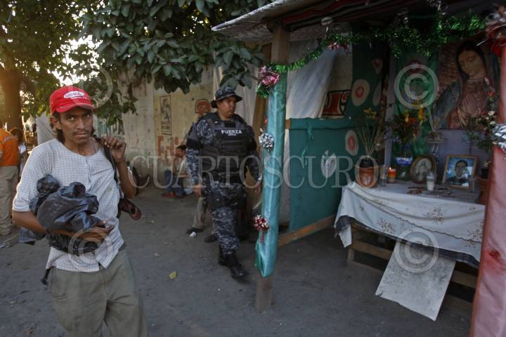 GUADALAJARA, JALISCO, 24MAYO2016.- Esta tarde personal de la Fiscalía del Estado, Policía Federal, del Instituto Nacional de Migración (INM) así como del Ayuntamiento de la ciudad, realizaron un operativo en la zona de Avenida Inglaterra al cruce con Enrique Díaz de León lugar donde habitaban migrantes, en dicho operativo estuvieron presentes integrantes de asociaciones como FM4 que apoyan a personas en busca del sueño americano y este se llevo a cabo a causa de frecuentes reportes por robos en la zona así como para invitar a los migrantes a los diversos albergues para personas en transito, tanto del territorio mexicano como de otros países. FOTO : FERNANDO CARRANZA GARCIA / CUARTOSCURO.COM
