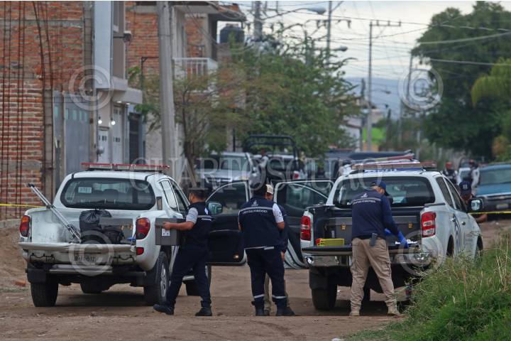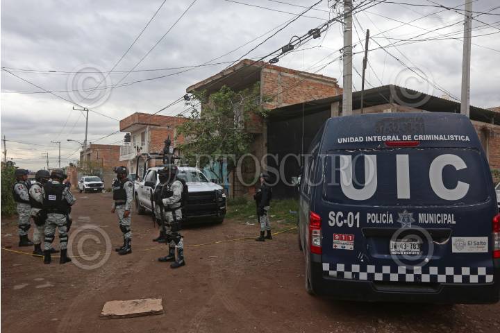 Policía del Salto resguarda la zona donde la noche de ayer se registro un enfrentamiento entre civiles armados y policías del municipio así como del estado, el cual dejo como saldo 12 personas fallecidas, en el municipio del Salto, Jalisco.