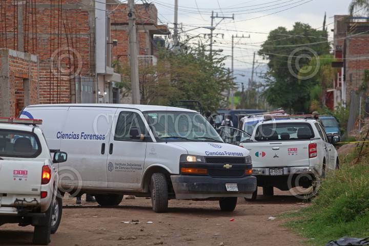 Peritos del del Instituto jalisciense de Ciencias Forenses (IJCF), durante los peritajes de ley en la zona donde la noche de ayer se registro un enfrentamiento entre civiles armados y policías del municipio así como del estado, el cual dejo como saldo 12 personas fallecidas, en el municipio del Salto, Jalisco.