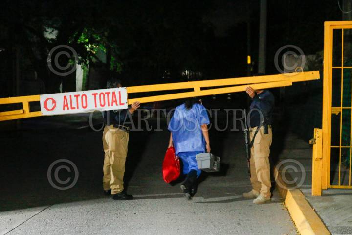 CHILPANCINGO, GUERRERO, 07NOVIEMBRE2024.- Personal del Ejército Mexicano resguardo las instalaciones de Fiscalía General del Estado de Guerrero, luego del hallazgo de una camioneta con restos humanos. Violando todo protocolo, personal de la Policía Investigadora Ministerial (PIM), retiro el vehículo del lugar, en que fue encontrada luego del reporte de olores fétidos, esto, tan solo unos minutos después del hallazgo, trasladando la unidad al interior de Servicios Periciales de la FGE. Con información aun por confirmar, se dice que podrían tratarse de una parte de los 17 miembros de una familia de la localidad de Chautipan, desaparecida desde el 22 de octubre en el municipio de Chilapa. FOTO: DASSAEV TÉLLEZ ADAME/CUARTOSCURO.COM