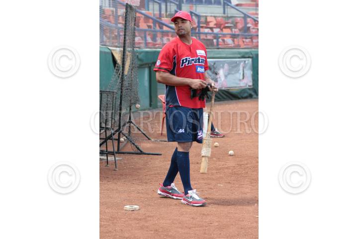 CAMPECHE, CAMPECHE, 24FEBRERO2011.- Piratas de Campeche, equipo que participa en la Liga Mexicana de Beísbol (LMB), se reporta listo para la inauguración de la presente temporada por lo que realiza practicas de acondicionamiento físico y jugadas en el estadio Nelson Barrera. En la imagen el panameño Rubén Rivera; outfielder del equipo. FOTO: MARCO POLO GUZMÁN HERNÁNDEZ/CUARTOSCURO.COM