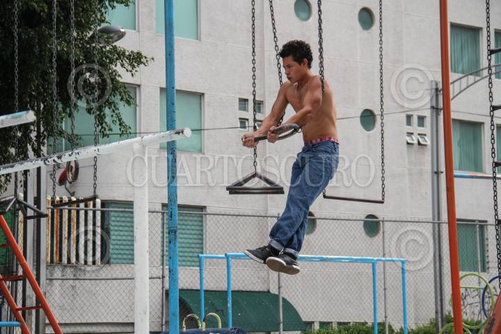 MÉXICO, D.F., 06SEPTIEMBRE2015.- Es un deporte callejero que no genera ninguna inversión económica, no se necesita tener equipos sofisticados, se puede hacer al aire libre, y esta denominado como calistenia, que es una actividad física que está basada en ejercicios de peso y control corporal; también es conocido como "extreme workout". FOTO: ISABEL MATEOS /CUARTOSCURO.COM
