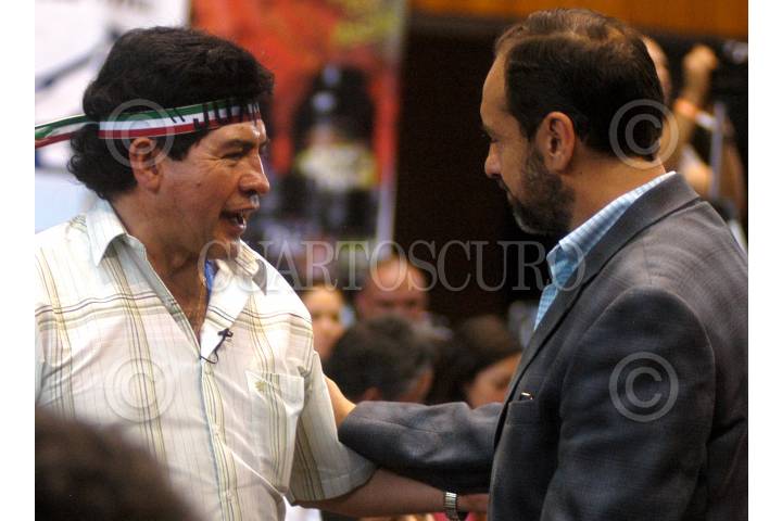 MÉXICO D.F., 27SEPTIEMBRE2009.- Rafael Acosta "Juanito", delegado electo de Iztapalapa, acudió como invitado a la premiación del concurso Srita. Perfección and Fitness, que se llevo acabo en el auditorio de la alberca Olímpica, donde aprovecho para saludar a Bernardo de la Garza, delegado panista de Benito Juárez. FOTO: LUIS CARBAYO/CUARTOSCURO.COM