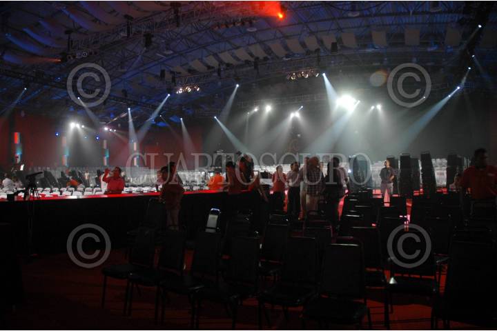VERACRUZ, VERACRUZ. 02SEPTIEMBRE2008.- Con la instalación y adecuación de los salones del WTC donde se llevara a cabo el homenaje denominado "Viva Lara" en honor al "Flaco de Oro" Agustín Lara. Se realizan los ensayos por parte de los artistas invitados como: el tenor Fernando de la Mora, Gualberto y Benito Castro, Ana Sirre, Adriana Landeros, Playa Limbo, Margarita, Mijares. Entre otros. FOTO: JOSÉ CANDELARIO/CUARTOSCURO.COM