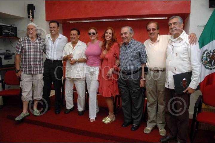 VERACRUZ, VERACRUZ, 02SEPTIEMBRE2008.- Este medio día se ofreció una rueda de presa con algunos de los participantes al homenaje denominado "Viva Lara" en honor al "Flaco de Oro" Agustín Lara y que se realizara mañana en las instalaciones del WTC. Dirigida por el productor Marco Flavio Cruz y donde estuvieron presentes el tenor Fernando de la Mora, Gualberto Castro, Ana Sirre, Adriana Landeros, Juan Calderón y Benito Castro. FOTO: JOSÉ CANDELARIO/CUARTOSCURO.COM