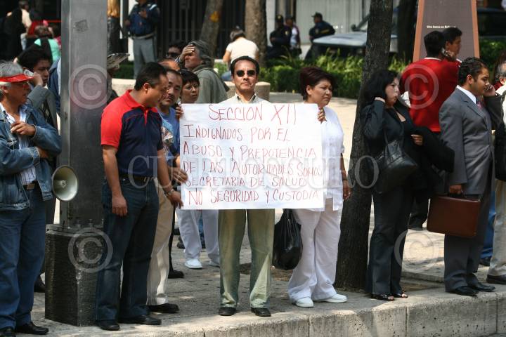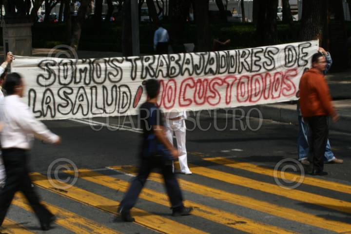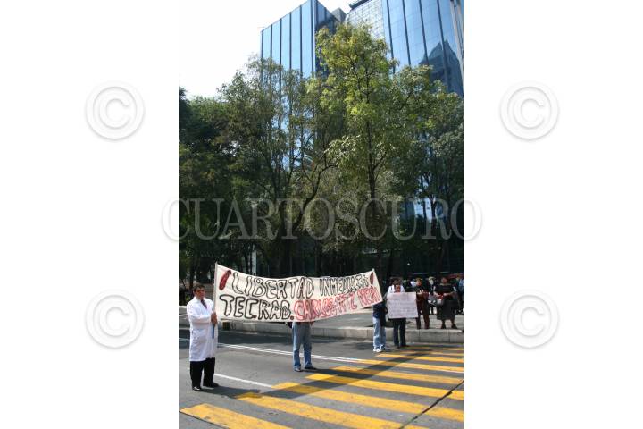 MÉXICO, D.F., 03OCTUBRE2008.- Un grupo de médicos pertenecientes al hospitar de Xoco protesta frente a las oficinas de la PGR ubicada en reforma, donde exijieron la libertad y apoyo para Carlos Martínez Neri quién es acusado de complicidad por la fuga de Ángel Cisneros Marín, alias, 'El Flaco' escapa del hospital Xoco, el pasado 28 de Septiembre. FOTO: SÁSHENKA GUTIÉRREZ/ CUARTOSCURO.COM FOTO