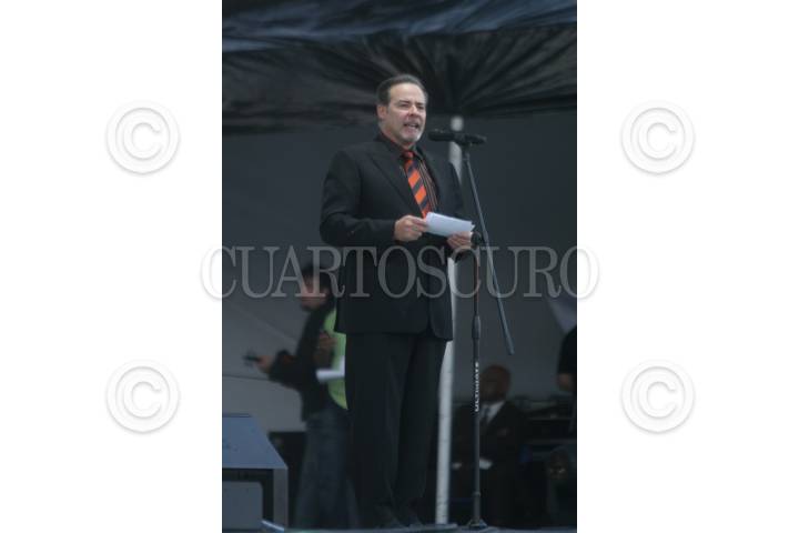 MÉXICO, D.F., 24OCTUBRE2010.- El actor, Cesar Evora, fue quien condujo el concierto homenaje que cuba le rindio en la Plancha del Zocalo Capitalino al Flaco de Oro, Aguston Lara. FOTO: ENRIQUE ORDÓÑEZ/CUARTOSCURO.COM
