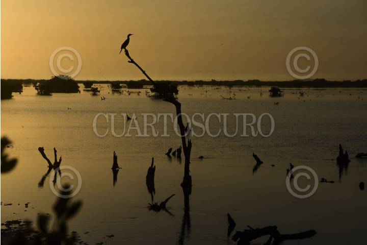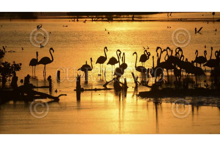 TELCHAC, YUCATÀN, 03AGOSTO2016.- Miles de flamingos se alimentan en la ría, una especie de brazo de mar que se encierra en la costa, lo que brinda un espectáculo de color rosa y dorado al amanecer. FOTO: ELIZABETH RUIZ /CUARTOSCURO.COM