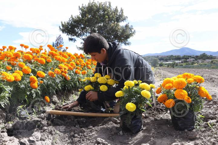 SAN PABLO VILLA DE MITLA, OAXACA, 27OCTUBRE2024.- Floricultores de la agencia Unión Zapata, perteneciente a San Pablo Villa de Mitla, se pararan para cosechar las variedades de flor de cempasúchil y cresta de gallo que este año adornarán los altares de Día de Muertos. Decenas de hectáreas fueron cultivadas en esta comunidad zapoteca que también recibe a visitantes para que disfruten de los campos floridos y adquieran productos. FOTO: CAROLINA JIMÉNEZ/ CUARTOSCURO.COM