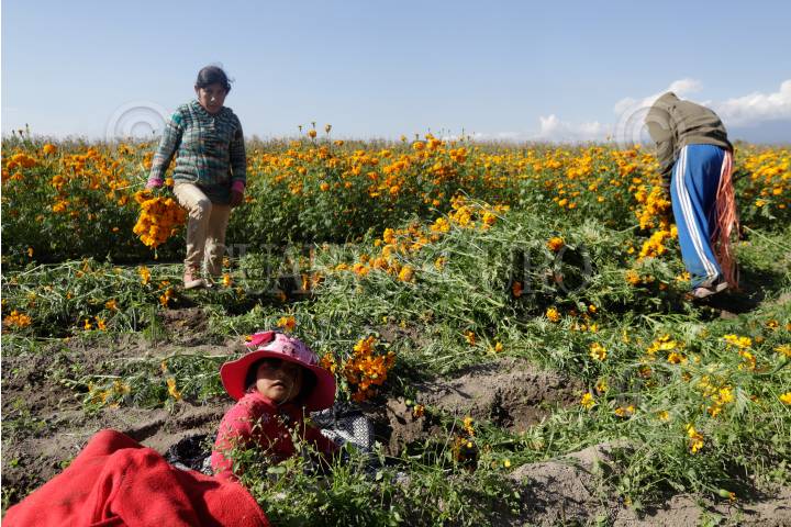 Familias del poblado de Nealtican se dedican a la cosecha de la flor de cempasúchil para la venta en mercados poblanos.