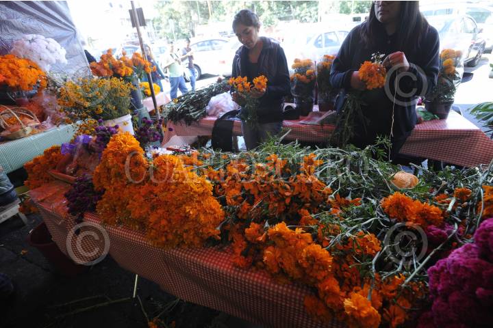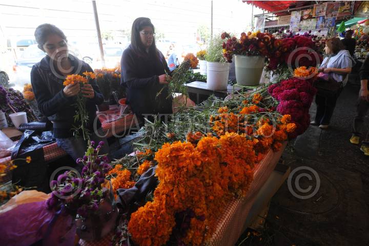 CIUDAD DE MÉXICO, 30OCTUBRE2016.- En el Mercado de San Cosme se vende papel picado, calaveritas de azúcar y flor de cempasúchil y terciopelo para los altares por el Día de Muertos. FOTO: ARMANDO MONROY /CUARTOSCURO.COM