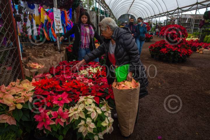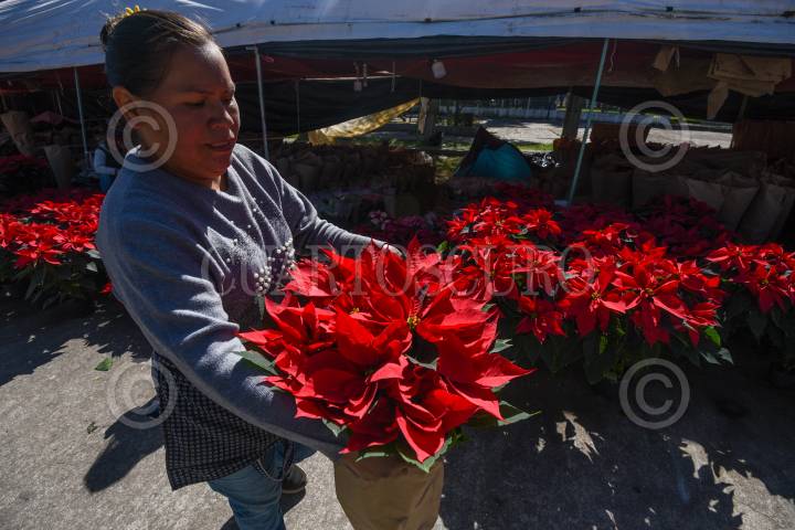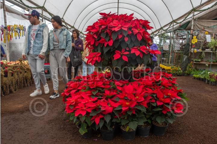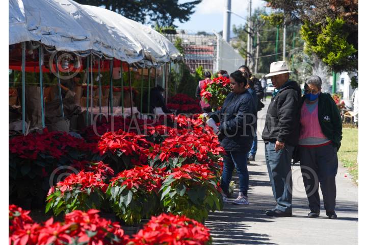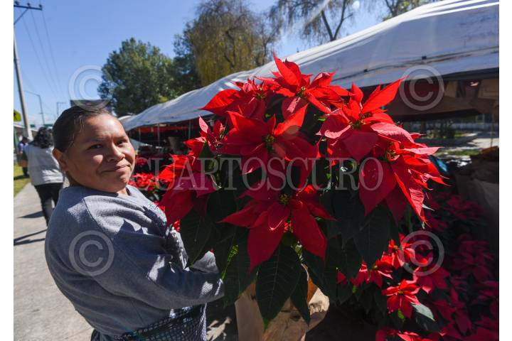 Productores de flor de Nochebuena de Zitácuaro, Michoacán llegan cada año a diferentes puntos de Toluca para vender estas flores de temporada que adornarán los hogares mexiquenses.