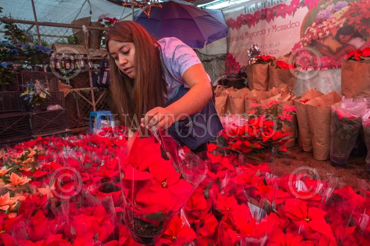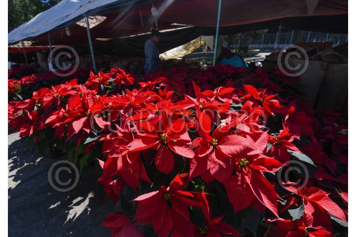 Locatarios de “El Palacio de la Flor” comenzaron la venta de las distintas variedades de Cuetlaxochitl, o Flor de nochebuena. Aproximadamente 3.7 millones de esta planta serán vendidos esta temporada en los mercados de la Ciudad de México.