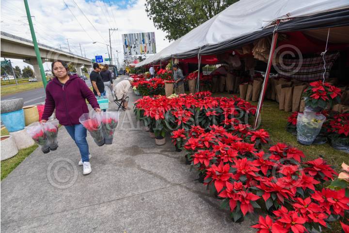 TOLUCA, ESTADO DE MÉXICO, 06DICIEMBRE2024.- La flor de Nochebuena es un elemento importante en la celebración de las fiestas decembrinas, productores de esta flor provenientes de Zitácuaro, Michoacán se dan cita en el Parque 18 de Marzo en la ciudad de Toluca para ofrecer esta flor en diversos colores como la tradicional roja, bicolor, blanca, rosa, entre otras, el próximo 8 de diciembre se celebra el Día Nacional de la Nochebuena, los productores invitar a la gente a consumir sus productos y adornar sus hogares para esta Navidad. FOTO: CRISANTA ESPINOSA AGUILAR /CUARTOSCURO.COM
