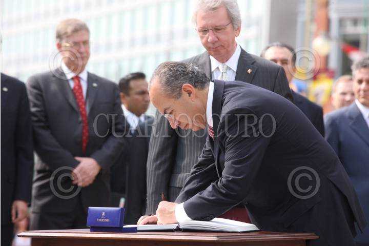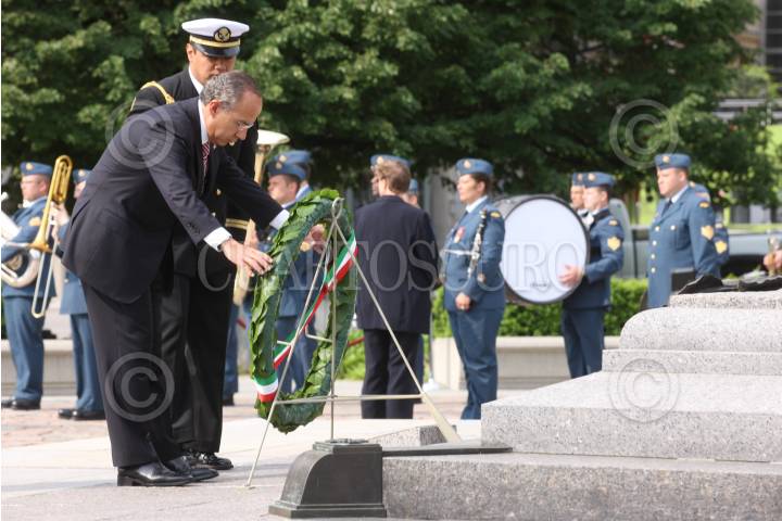 OTTAWA, CANADA, 27MAYO2010.- Felipe Calderón Hinojosa, presidente de México, asistió a la ceremonia de deposito de ofrenda floral, que tuvo lugar en el Monumento a los caídos (National War Memorial). FOTO: ALFREDO GUERRERO/CUARTOSCURO.COM