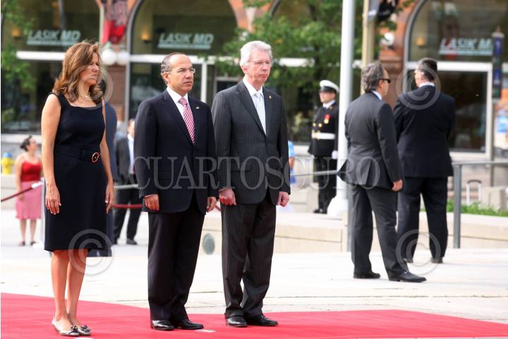 OTTAWA, CANADA, 27MAYO2010.- Margarita Zavala, primera dama, acompañó a Felipe Calderón Hinojosa, presidente de México, a la ceremonia de deposito de ofrenda floral, que tuvo lugar en el Monumento a los caídos (National War Memorial). FOTO: ALFREDO GUERRERO/CUARTOSCURO.COM