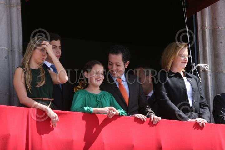 TOLUCA, ESTADO DE MÉXICO, 16SEPTIEMBRE2011.- Isis, Monserrat, Eruviel y Raul Ávila, hijos del gobernador del Estado de México observaron el desfile de la independencia de México desde un balcón del palacio de gobierno. FOTO: SAÚL LÓPEZ/CUARTOSCURO.COM