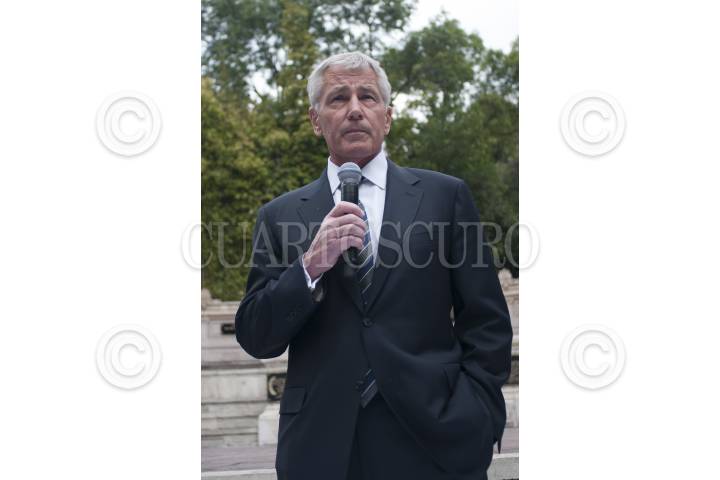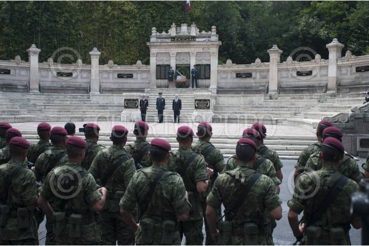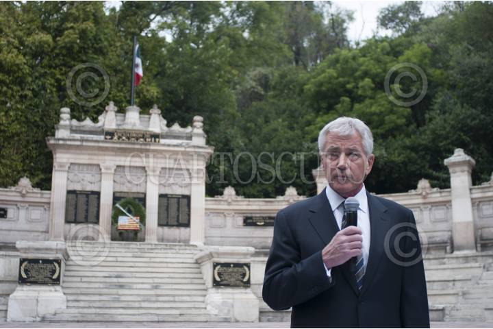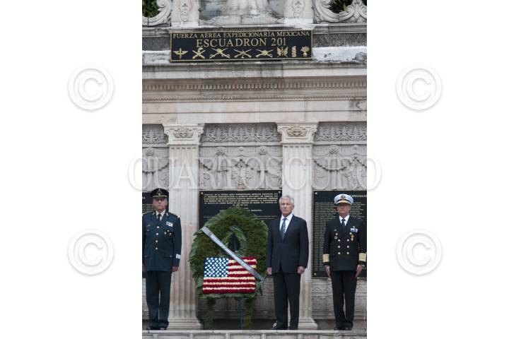 MÉXICO, D.F. 24ABRIL2014.- Timothy Charles Hagel, Secretario de Defensa de los Estados Unidos de América, acudió al Monumento a las Águilas Caídas a colocar una ofrenda floral en honor al escuadrón 201 que participó en la segunda guerra mundial. FOTO: IVÁN STEPHENS /CUARTOSCURO.COM