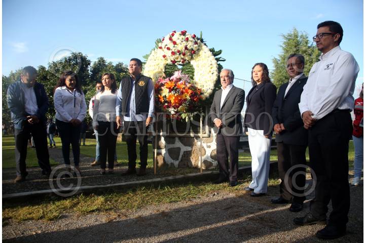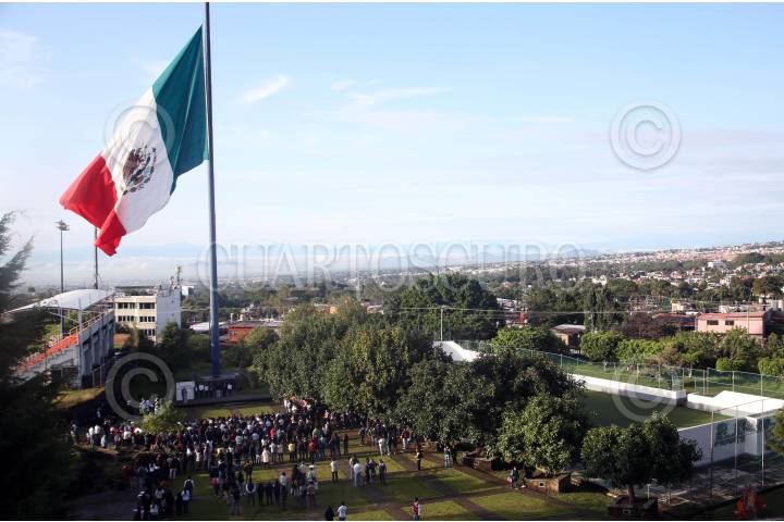 CUERNAVACA, MORELOS, 02OCTUBRE2019.-Gustavo Urquiza, rector de la Universidad Autónoma del Estado de Morelos y Erick Gonzales García presidente de la Federación de Estudiantes encabezaron el izamiento de bandera y ofrenda floral por los estudiantes asesinados el 2 de octubre de 1968 en la Plaza de Tlatelolco. FOTO: MARGARITO PÉREZ RETANA /CUARTOSCURO.COM