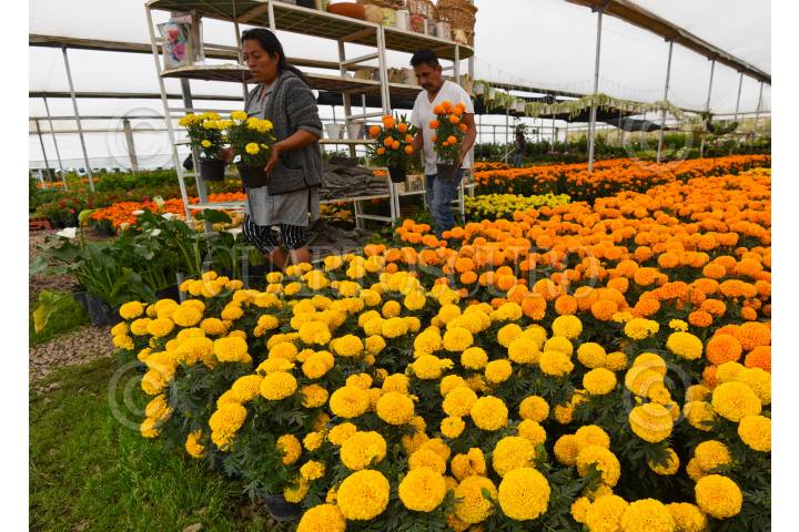 ATLACOMULCO, ESTADO DE MÉXICO, 23OCTUBRE2023.- Los viveros de San Lorenzo Tlacotepec en Atlacomulco se visten de naranja y amarillo ir la producción y venta de la flor de cempasúchil en maceta, la cual es producida por floricultores de esta comunidad, y las cuales serán ocupadas para adornar las ofrendas con motivo del Día de Muertos; durante la pandemia su producción y venta fue baja pero se han ido recuperando poco a poco y los visitantes no dudan en llevarse sus flores de cempasúchil para adornar sus hogares. FOTO: CRISANTA ESPINOSA AGUILAR /CUARTOSCURO.COM