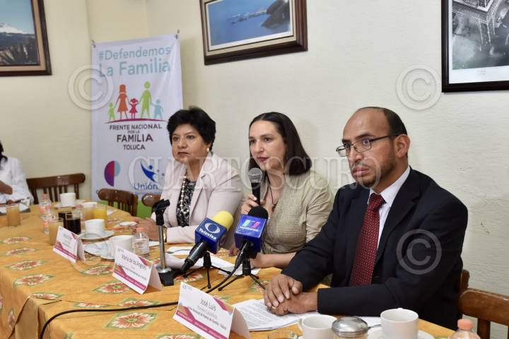 TOLUCA, ESTADO DE MÉXICO, 27SEPTIEMBRE2024.- Integrantes del Frente Nacional por la Familia en el Estado de México ofrecieron un pronunciamiento de rechazo a lo que consideran una indebida intromisión del IEEM en agendas ideológicas que promueven políticas de eliminación de población mexiquense, e hicieron un llamado a los diputados mexiquense para legislar a favor de la población. FOTO: CRISANTA ESPINOSA AGUILAR /CUARTOSCURO.COM