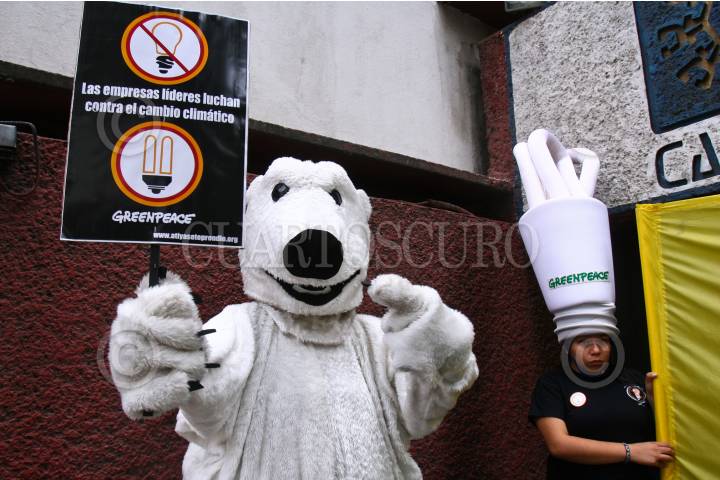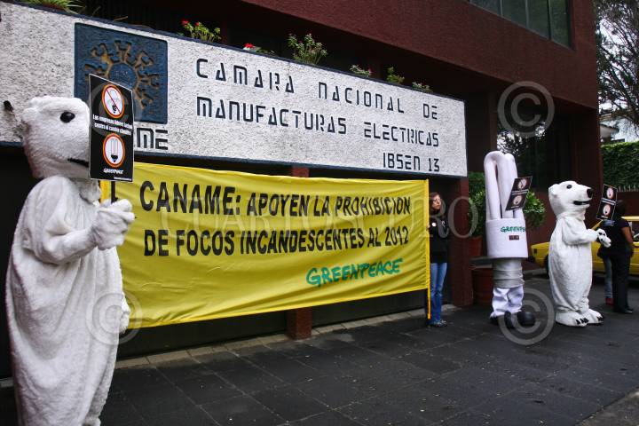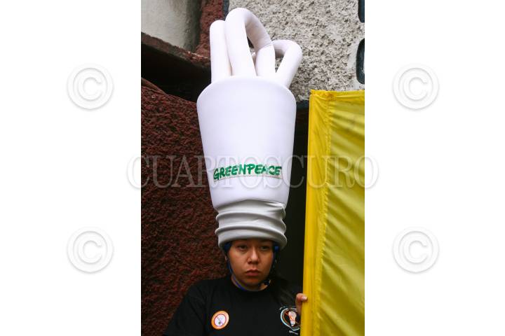 MÉXICO D.F., 13ABRIL2010.- Miembros de Greenpeace se manifestaron afuera de la Cámara Nacional de Manufacturas Eléctricas para que apoyen la prohibición de focos incandescentes a partir del 2012. FOTO: ISAAC ESQUIVEL/CUARTOSCURO.COM