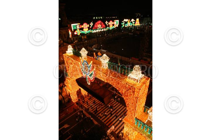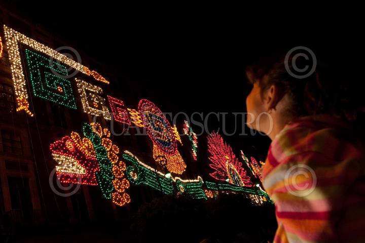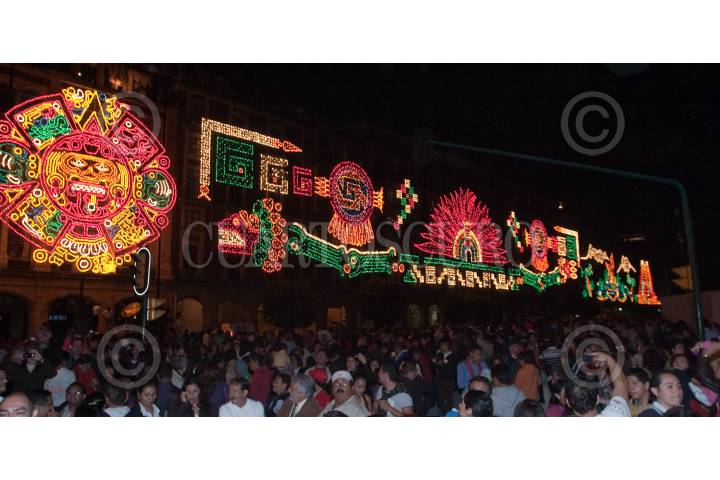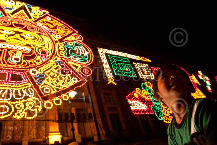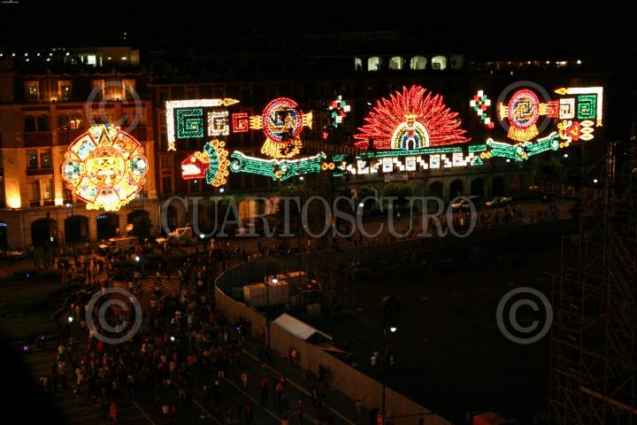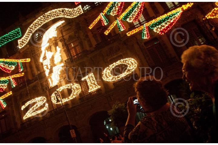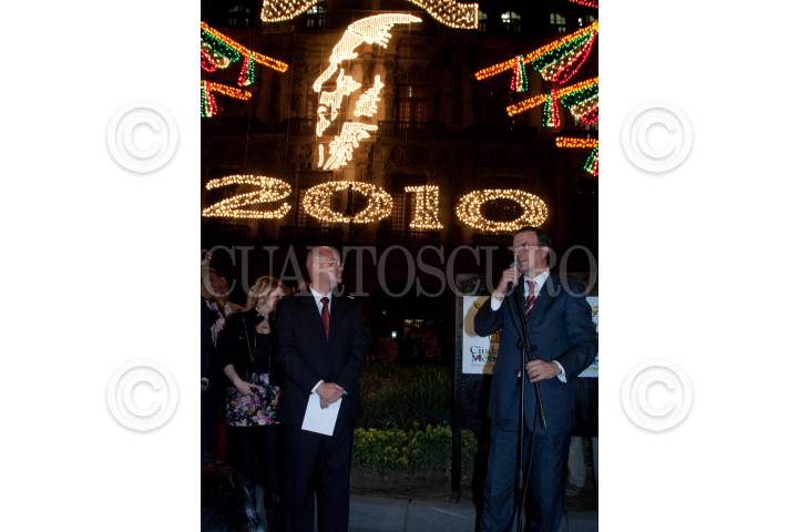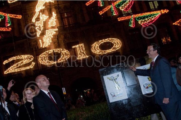 MÉXICO, D.F., 01SEPTIEMBRE2010.- Marcelo Ebrard Casaubón, Jefe de Gobierno del Distrito Federal, encendió de manera simbólica alrededor de 150 mil focos del alumbrado que se encuentra en los edificios del Gobierrno del Distrito Federal y el Hotel Majestic en la Plaza de la Constitución ante mas de 2 mil personas. Todo esto como parte de los festejos del Bicenteneario y Centenario de la Independencia y Revolución, respectivamente de México que comienzan a partir de hoy miércoles 1 de septiembre. FOTO: MISAEL VALTIERRA/CUARTOSCURO.COM