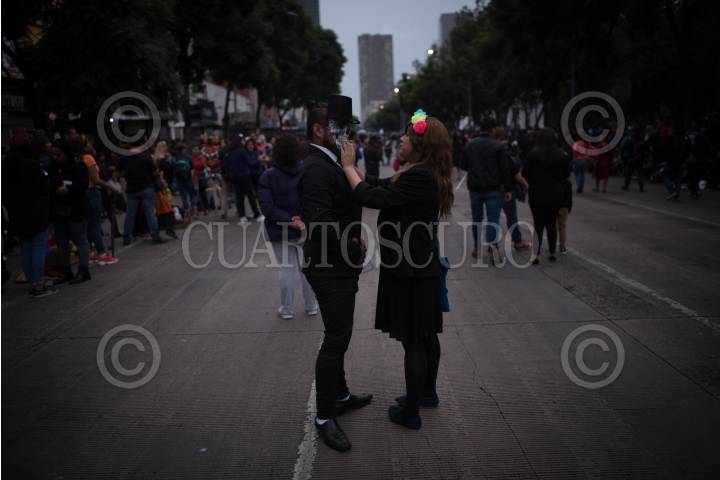 CIUDAD DE MÉXICO, 26OCTUBRE2019.- Miles de personas participaron en la Mega Procesión de Catrinas 2019, la cual partió del Ángel de la Independencia hasta el Zócalo capitalino. FOTO: PEDRO ANZA /CUARTOSCURO.COM