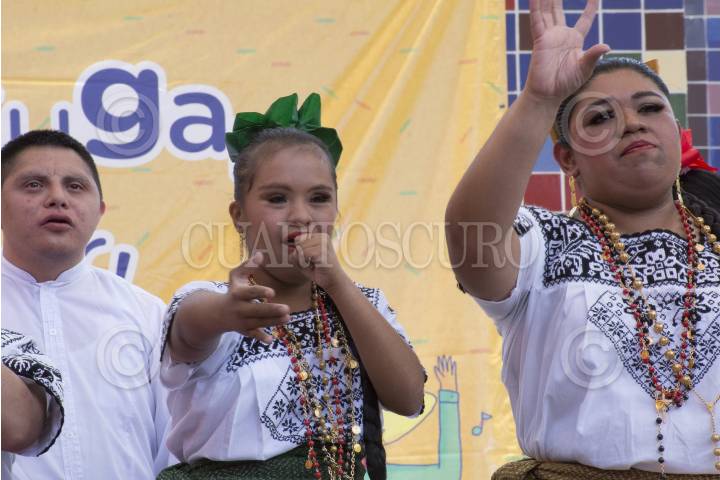 CIUDAD DE MÉXICO, 30ABRIL2017.- El grupo de danza tradicional folklórica “Estrellas con Ángel” conformado por personas menores de edad con síndrome de down, participaron en un espectáculo de cuatro número de danza en la plaza de las artes del Centro Nacional de las Artes (CENART), como parte del festival “Todos a bailar y a danzar”. La participación del grupo es parte del programa “Inclusión de niños con discapacidad a través de los lenguajes artísticas que instrumenta “Alas y Raíces” en Campeche, Yucatán, Quintana Roo, Chiapas, Tabasco y Verazruz. FOTO: MARIO JASSO /CUARTOSCURO.COM