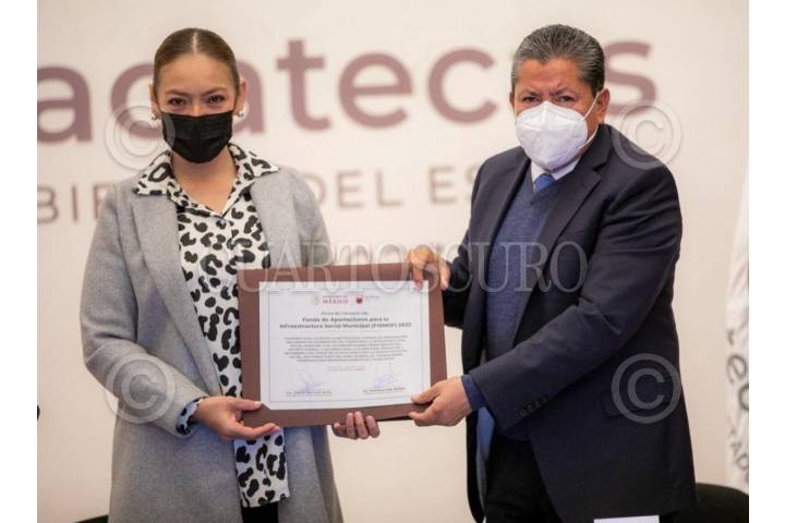 Verónica Díaz Robles, delegada de Programas para el Desarrollo y representante del Gobierno de México en Zacatecas, y David Monreal, gobernador de Zacatecas, firmaron el convenio del Fondo de Aportaciones para la Infraestructura Social Municipal (FISM) 2022