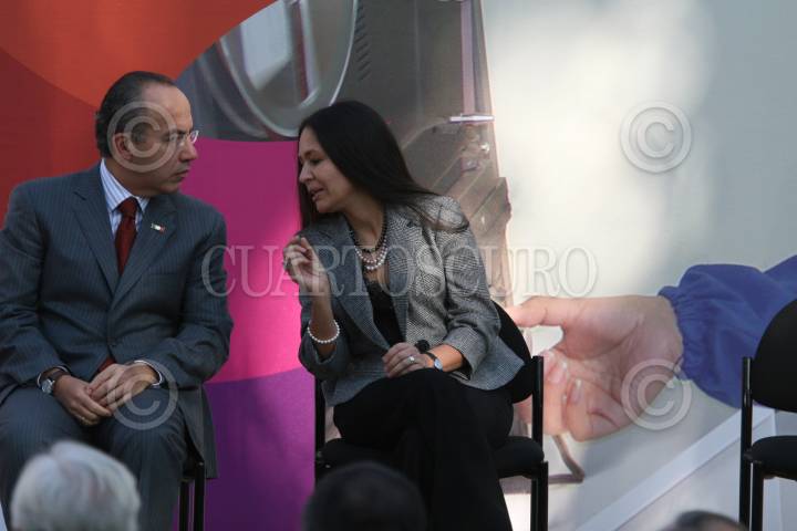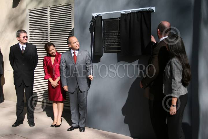 MÉXICO D.F., 10DICIEMBRE2008.- El presidente, Felipe Calderón Hinojosa, acompañado de Josefina Vázquez Mota, titular de la SEP, Sergio Vela Presidente de CONACULTA, realizo esta mañana la inauguración de la nueva Fonoteca Nacional, ubicada en Coyoacán. FOTO: GUILLERMO PEREA/CUARTOSCURO.COM