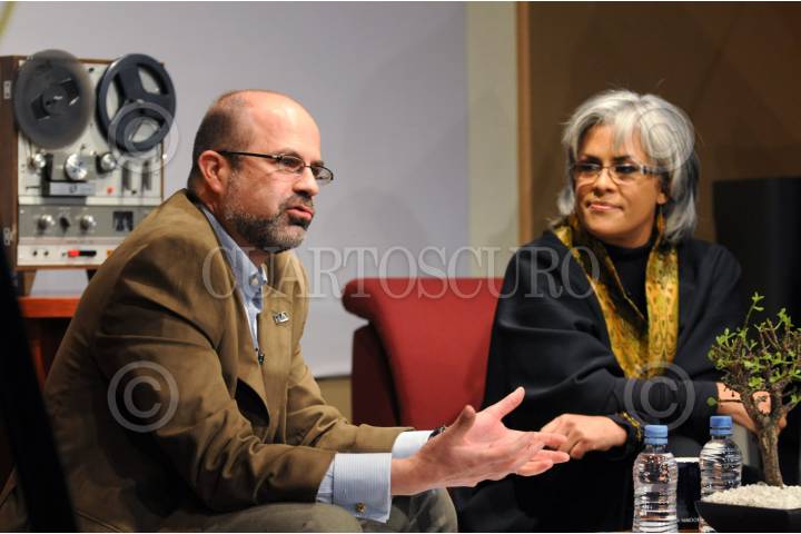 MÉXICO, D.F., 26FEBRERO2010.- Eugenia León, cantautora, y Álvaro Hegewisch, Director General de la Fonoteca Nacional, durante el inició de sesiones de escucha "Vamos a la Fototeca con Eugenia León". Eugenia León presentará lo que serán las sesiones de escucha a lo largo del año, donde se podrán oír los sonidos más antiguos que se conservan, no sólo de México sino del mundo, hasta las grabaciones más emblemáticas, históricas, cómicas, trágicas, musicales, entrañables y significativas dentro de la cultura popular y el imaginario sonoro del siglo XX y la primera década del XXI. Las sesiones se realizarán en la Fonoteca Nacional, ubicada en Francisco Sosa 383, colonia Barrio de Santa Catarina, en Coyoacán. Entrada libre. Programación de sesiones: 25 de marzo, 29 de abril, 27 de mayo, 24 de junio, 29 de julio, 19 de agosto, 30 de septiembre, 28 de octubre y 25 de noviembre. FOTO: ARTURO LÓPEZ/CUARTOSCURO.COM