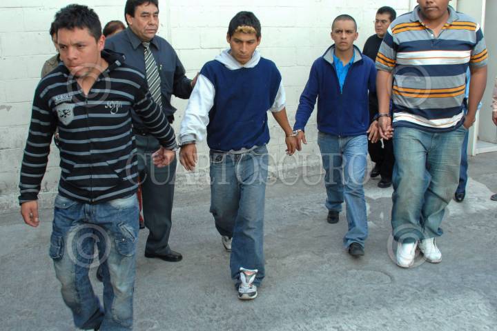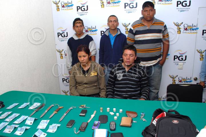 MÉXICO, D.F., 24MARZO2010.- Cinco jovenes, entre ellos una mujer; fueron presentados en las instalaciones de la PGJDF por su presunta responsabilidad en el asalto a camiones foraneos en la carretera México-Puebla. FOTO: CUARTOSCURO.COM
