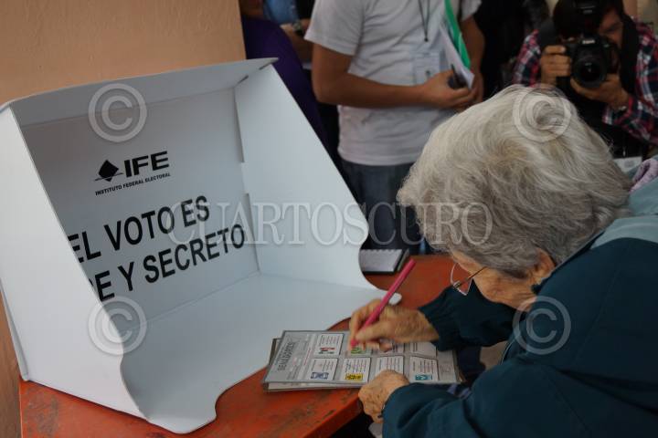 MÉXICO, D.F., 01JULIO2012.- Una señora de la tercera edad emite su voto "libre y secreto" en la casilla especial para foráneos ubicada en la Primaria Centro Urbano Presidente Alemán sobre la avenida Coyoacán. FOTO: PEDRO ANZA /CUARTOSCURO.COM