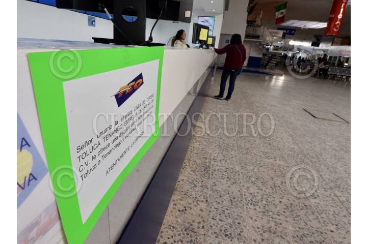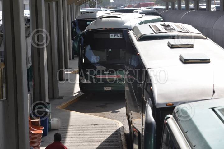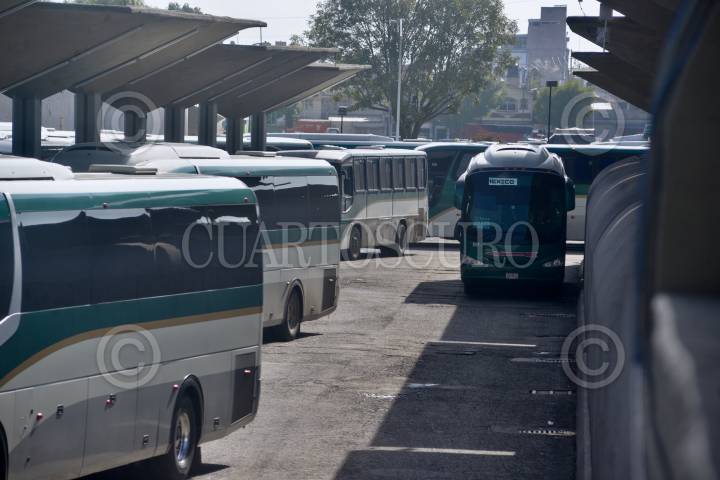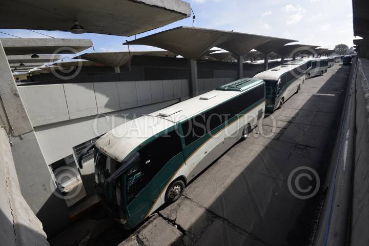 TOLUCA, ESTADO DE MÉXICO, 05OCTUBRE2018.- La líneas de transporte foráneo Flecha Roja y TEO suspendieron las corridas a Tenancingo de forma indefinida, ante la problemática que se presenta con los estudiantes de la Normal de Tenería, después de que secuestraron 57 autobuses y a sus operadores y destruyeran 17 más, miembros de CANAPAT exigieron garantías para poder continuar prestando el servicio. FOTO: ARTEMIO GUERRA BAZ /CUARTOSCURO.COM