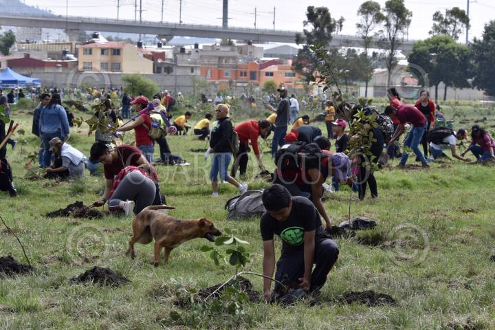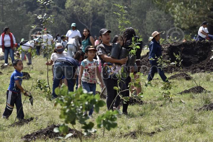 TOLUCA, ESTADO DE MÉXICO, 31MAYO2019.- Familias, estudiantes, organizaciones civiles y autoridades municipales participaron en la reforestación del Parque Alameda 2000, como parte de la campaña “Juntos por una capital verde”, en donde se pretende plantar 1.5 millones de árboles durante este año en diversos puntos de la capilla mexiquense. FOTO: CRISANTA ESPINOSA AGUILAR /CUARTOSCURO.COM