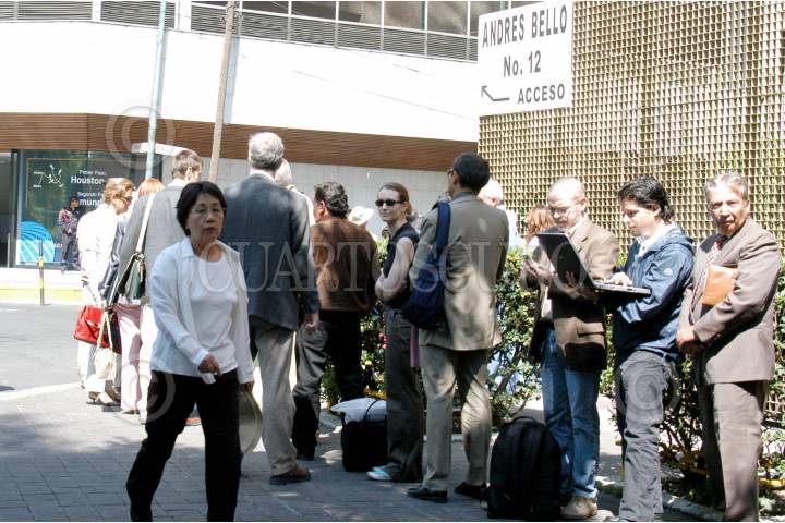 MÉXICO, D.F. 16 MARZO 2006.- Mientras se inauguraba el IV Foro Internacional del Agua, cientos de participantes de los cinco continentes, esperan formados para pagar su asistencia de 1,20 DLS diarios, en lo que una de las afectadas llamó “La venganza del Tercer Mundo”. La fila rodeaba el Hotel Presidente de Reforma. FOTO: Leticia Olvera/CUARTOSCURO.COM