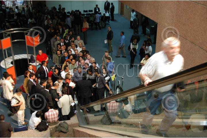 MÉXICO, D.F. 16 MARZO 2006.- Cientos de participantes de los cinco continentes, esperan formados para pagar su asistencia de 1,20 DLS diarios, mientras se inauguraba el IV Foro Internacional del Agua. FOTO: Leticia Olvera/CUARTOSCURO.COM