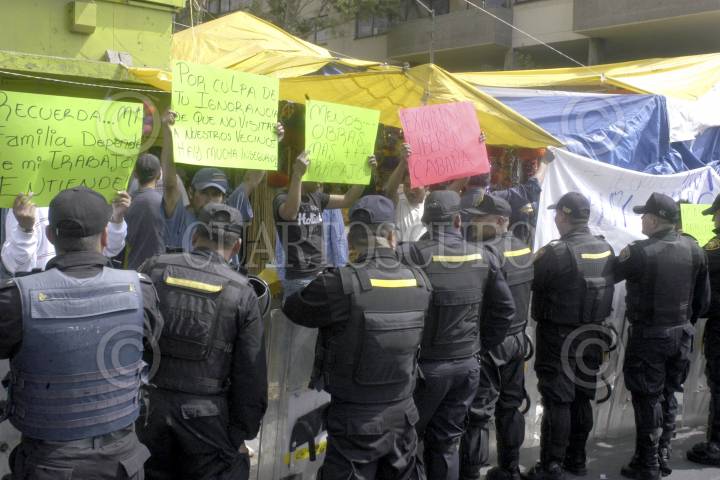 MÉXICO, D.F., 30SEPTIEMBRE2011.- Comerciantes establecidos de avenida Fray Servando se manifestaron en contra de los llamados ambulantes, ya que según ellos han visto afectadas sus ventas por la presencia de los comerciante informales, granaderos de la Secretaría de Seguridad Pública acudieron al lugar para replegar el bloqueo de dicha arteria. FOTO: LUIS CARBAYO/CUARTOSCURO.COM