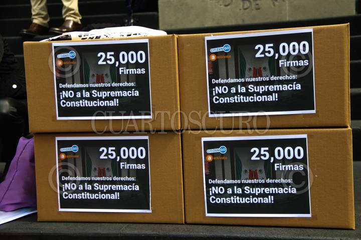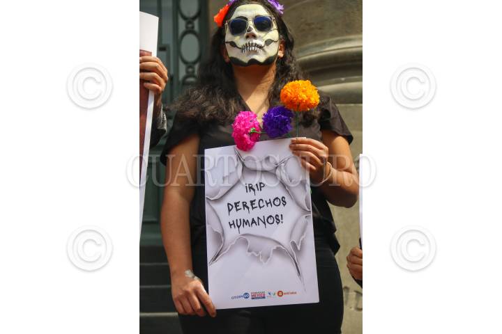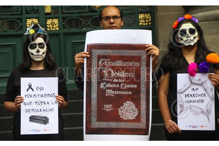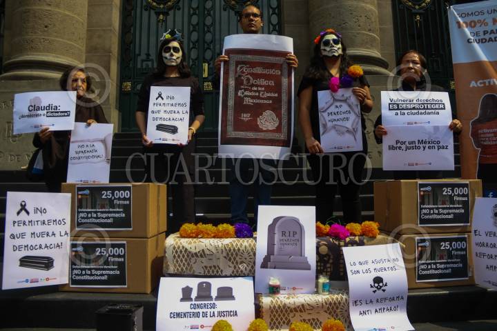 CIUDAD DE MÉXICO. 31OCTUBRE2024.- No a la supremacía Constitucional, con una ofrenda como protesta y una ofrenda, se manifestaron ciudadanos, frente al Congreso de la Ciudad de México. FOTO: VICTORIA VALTIERRA/CUARTOSCURO.COM