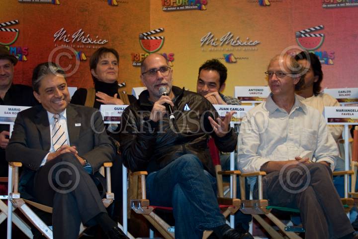 MÉXICO D.F. 26AGOSTO2010.- Alejandro Springall, María Navarro; Antonio Urrutia y Carlos Bolado; Juan Carlos Rulfo, directores de los cortometrajes que forman parte del proyecto “13 Formas de Amar a México” al termino de la presentación de los mismos los cuales serán transmitidos durante la programación diaria de este canal, y con esta transmisión será la participación en las celebración del Bicentenario de la Independencia. FOTO: GUILLERMO PEREA/CUARTOSCURO.COM
