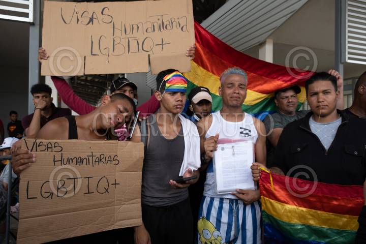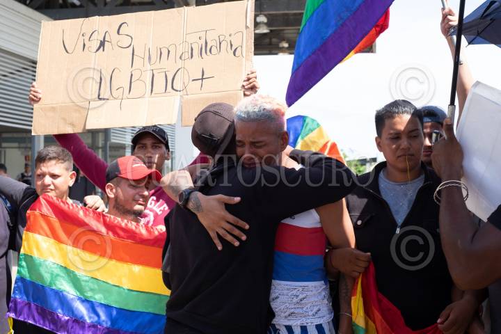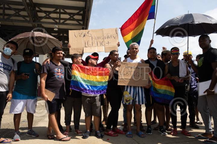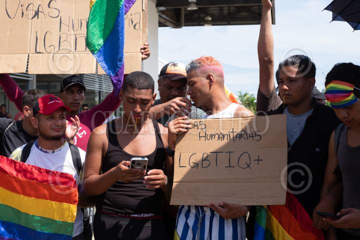 Integrantes de la comunidad LGBTTI se cocieron los labios en la Aduana Cerro Gordo del INM en donde denunciaron discriminación por parte de las autoridades, ellos buscan una visa humanitaria que les permita avanzar por el país de forma segura.