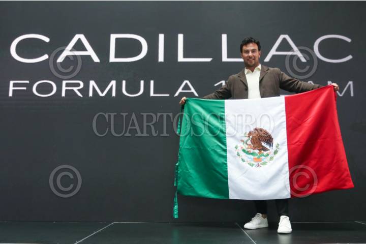 CIUDAD DE MÉXICO, 27AGOSTO2025.- El piloto automovilístico Sergio Pérez "Checo" junto con la bandera de México se tomó fotografías al termino de una conferencia de prensa en el Teatro Telcel, en la que anunció su regreso en la próxima edición de la Fórmula 1. FOTO: GRACIELA LÓPEZ/CUARTOSCURO.COM