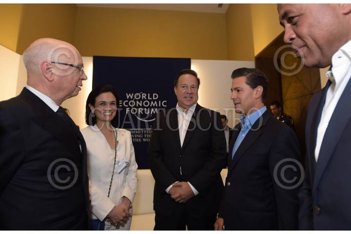 SOLIDARIDAD, QUINTANA ROO, 07MAYO2015.- Klaus Schwab, Fundador y Presidente Ejecutivo del Foro Económico Mundial, el presidente Enrique Peña Nieto, Juan Carlos Varela, presidente de Panamá, y Michel Martelly, mandatario de Haití, durante la sesión inaugural del Foro Económico Mundial sobre América Latina 2015. Según un comunicado de Presidencia. FOTO: PRESIDENCIA /CUARTOSCURO.COM