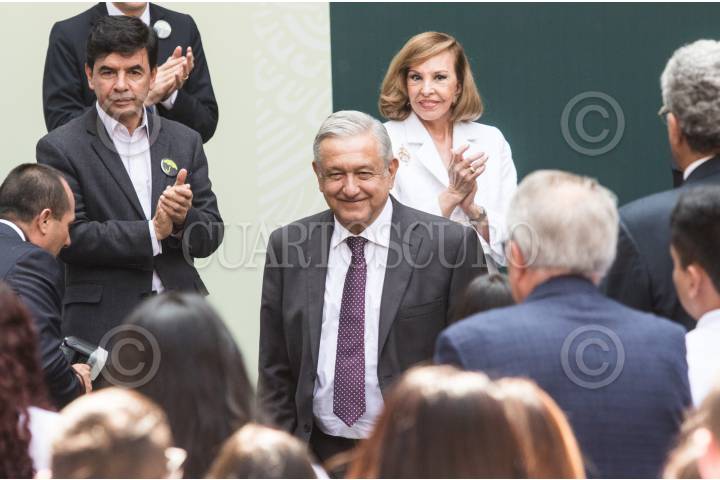 CIUDAD DE MÉXICO, 29OCTUBRE2019.- El presidente de México, Andrés Manuel López Obrador, inauguró este medio día el XX Congreso Internacional "50 años de Atención y Prevención de las Adicciones en el patio Central de Palacio Nacional. Lo acompañaron Kena Moreno, Luisa María Alcalde secretaria del Trabajo y Jorge Alcocer, titular de Salud. FOTO: VICTORIA VALTIERRA /CUARTOSCURO.COM