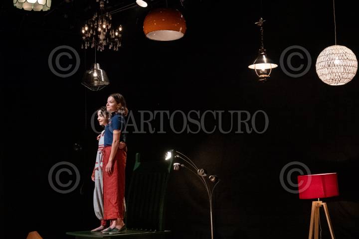 Adriana Llabrés actúa durante el estreno de la obra de teatro “Güevos”, presentándose en el Foro Shakespeare.